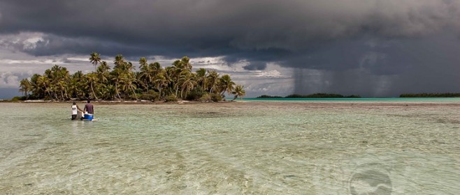 Llegando a la Laguna Azul en las Islas Tuamutu en Polinesia Francesa.